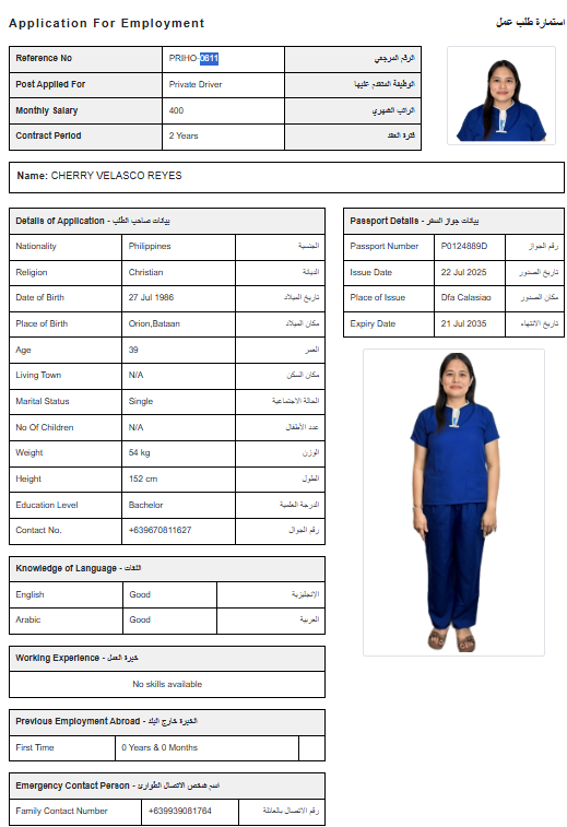 الخبرة: عاملة لأول مرة
